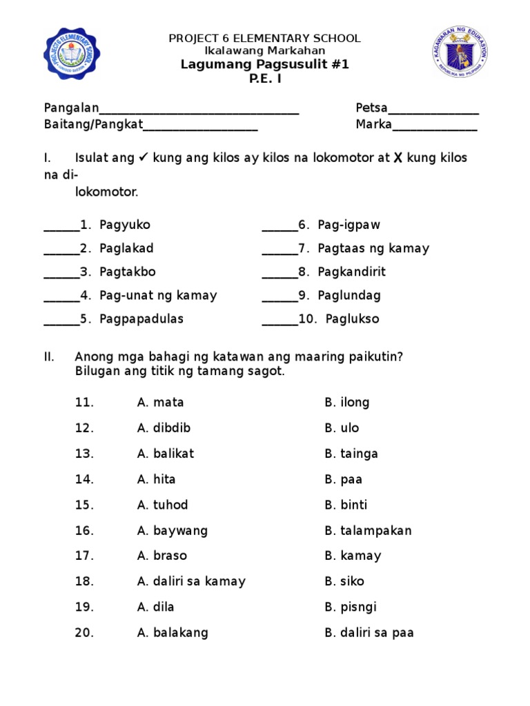 Kilos lokomotor at di lokomotor p.e i melc based unang markahan layunin: